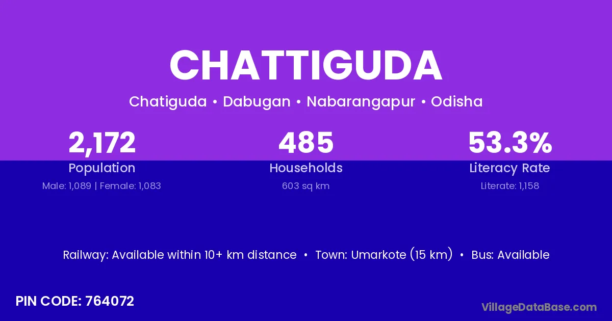 Chattiguda village is located in the Dabugan Tehsil of the Nabarangapur district in Odisha .