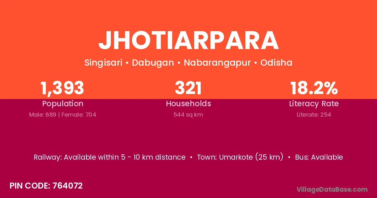 Umarkote (25 km) is the nearest town to Jhotiarpara village for major economic activities and is located approximately 25 km away.