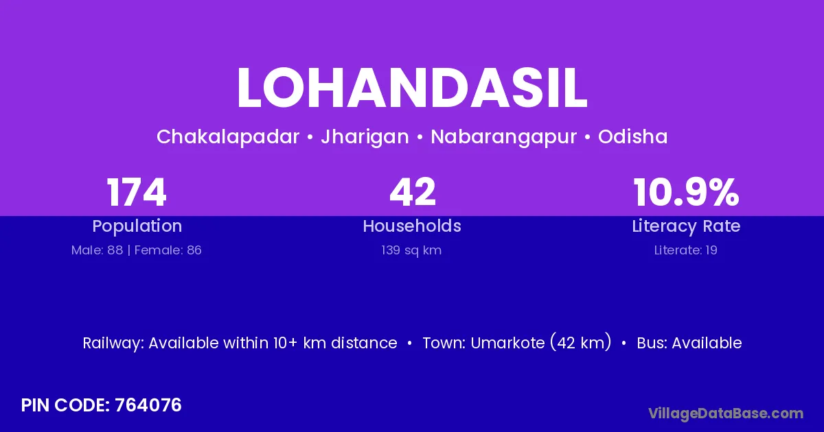 Umarkote (42 km) is the nearest town to Lohandasil village for major economic activities and is located approximately 42 km away.