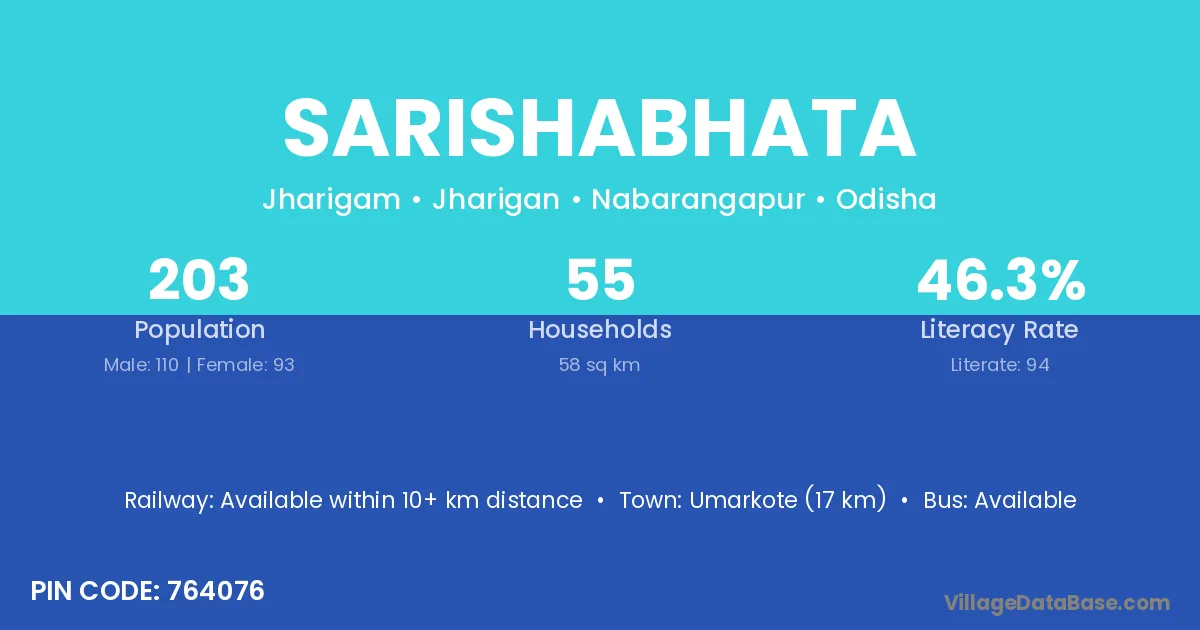 Sarishabhata village is located in the Jharigan Tehsil of the Nabarangapur district in Odisha .