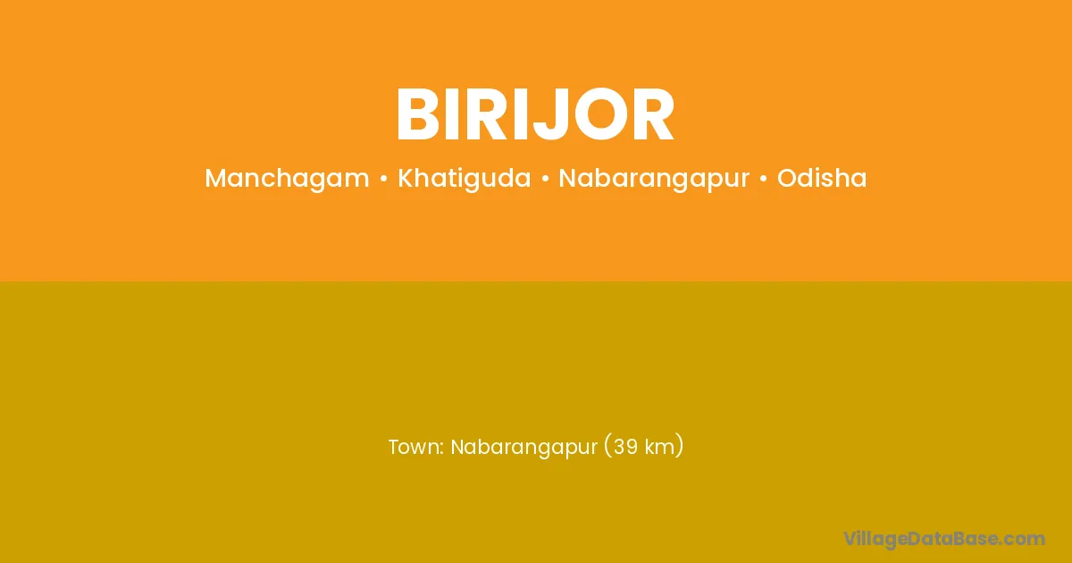 Nabarangapur (39 km) is the nearest town to Birijor village for major economic activities and is located approximately 39 km away.