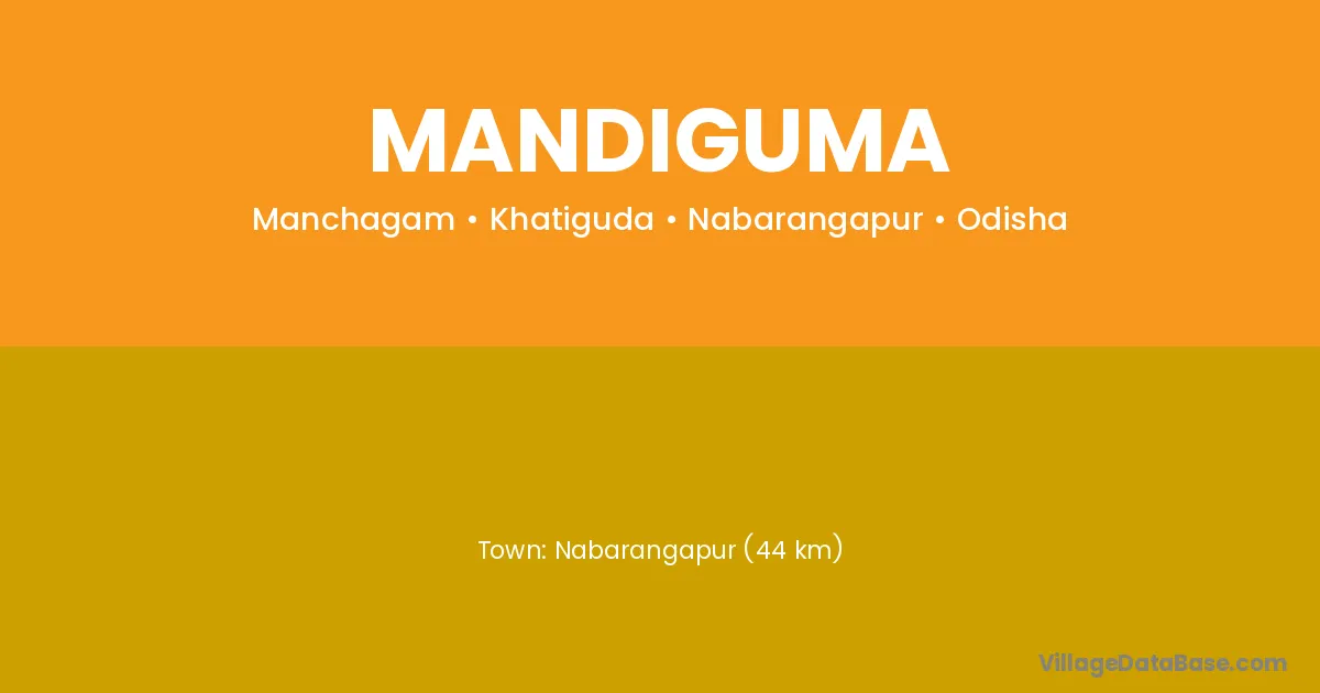 Nabarangapur (44 km) is the nearest town to Mandiguma village for major economic activities and is located approximately 44 km away.