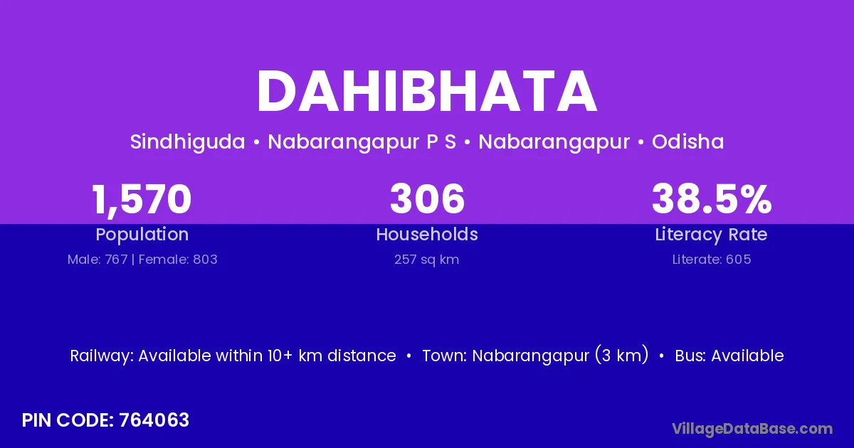 Nabarangapur (3 km) is the nearest town to Dahibhata village for major economic activities and is located approximately 3 km away.