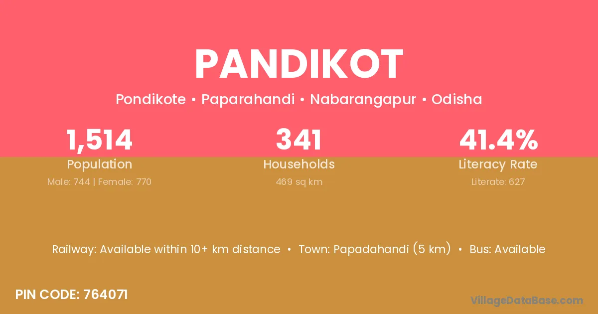 Papadahandi (5 km) is the nearest town to Pandikot village for major economic activities and is located approximately 5 km away.