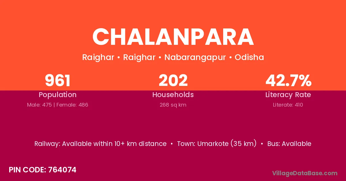 Chalanpara village has a total population of 961 people, of which 475 are males and 486 are females.