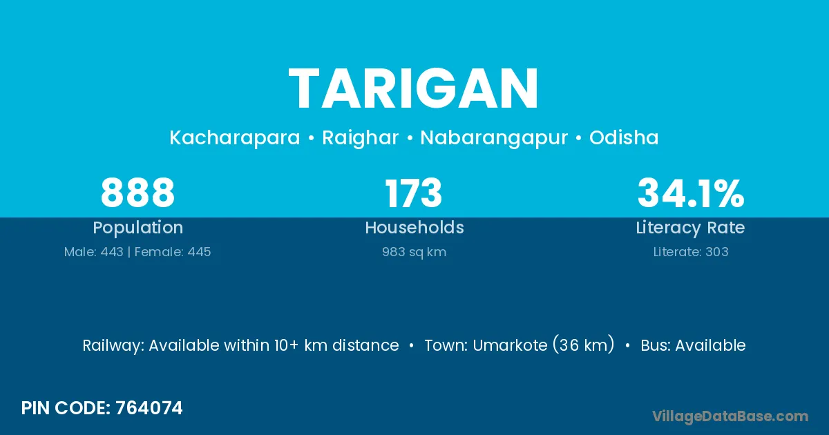 Umarkote (36 km) is the nearest town to Tarigan village for major economic activities and is located approximately 36 km away.