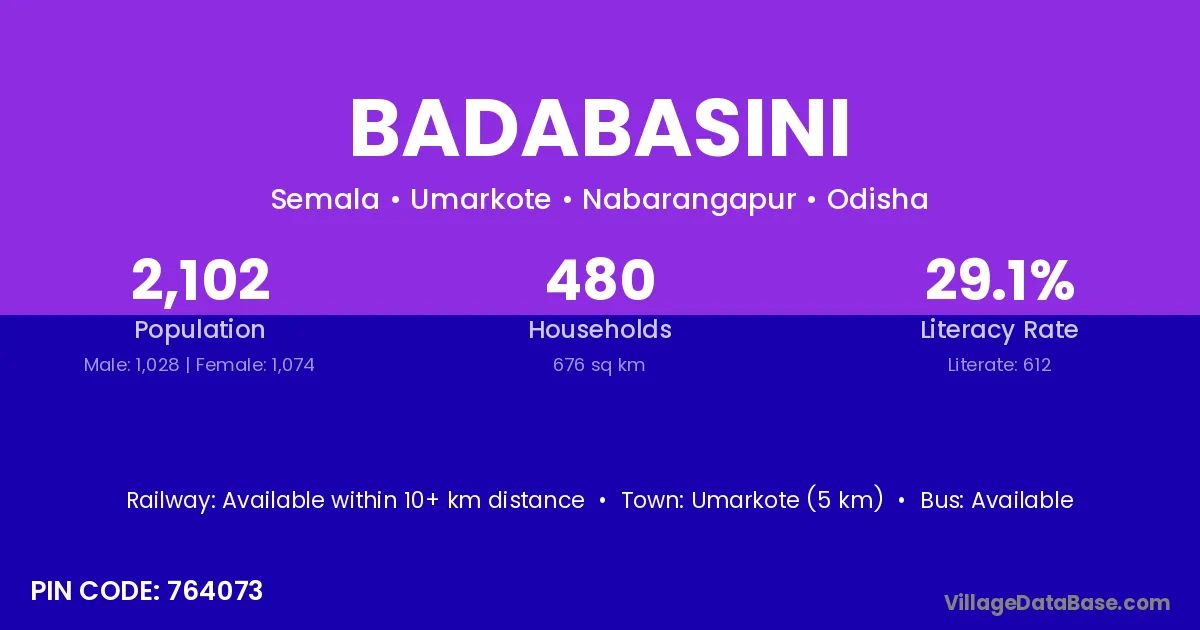 Umarkote (5 km) is the nearest town to Badabasini village for major economic activities and is located approximately 5 km away.