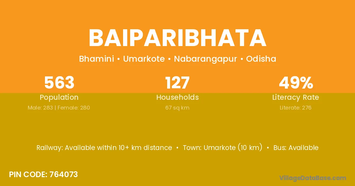 Baiparibhata village has a total population of 563 people, of which 283 are males and 280 are females.