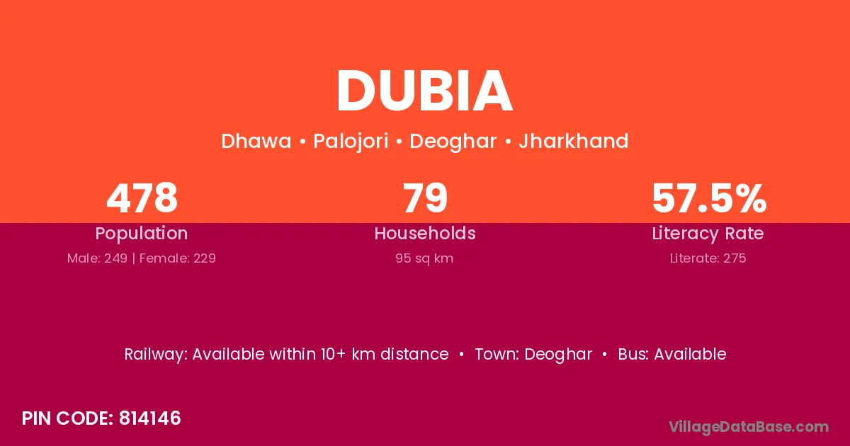 Umarkote (30 km) is the nearest town to Dubia village for major economic activities and is located approximately 30 km away.