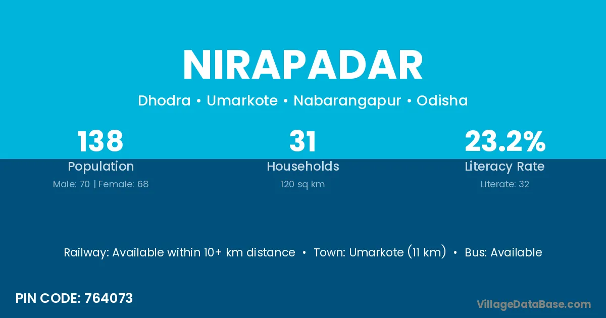 Umarkote (11 km) is the nearest town to Nirapadar village for major economic activities and is located approximately 11 km away.