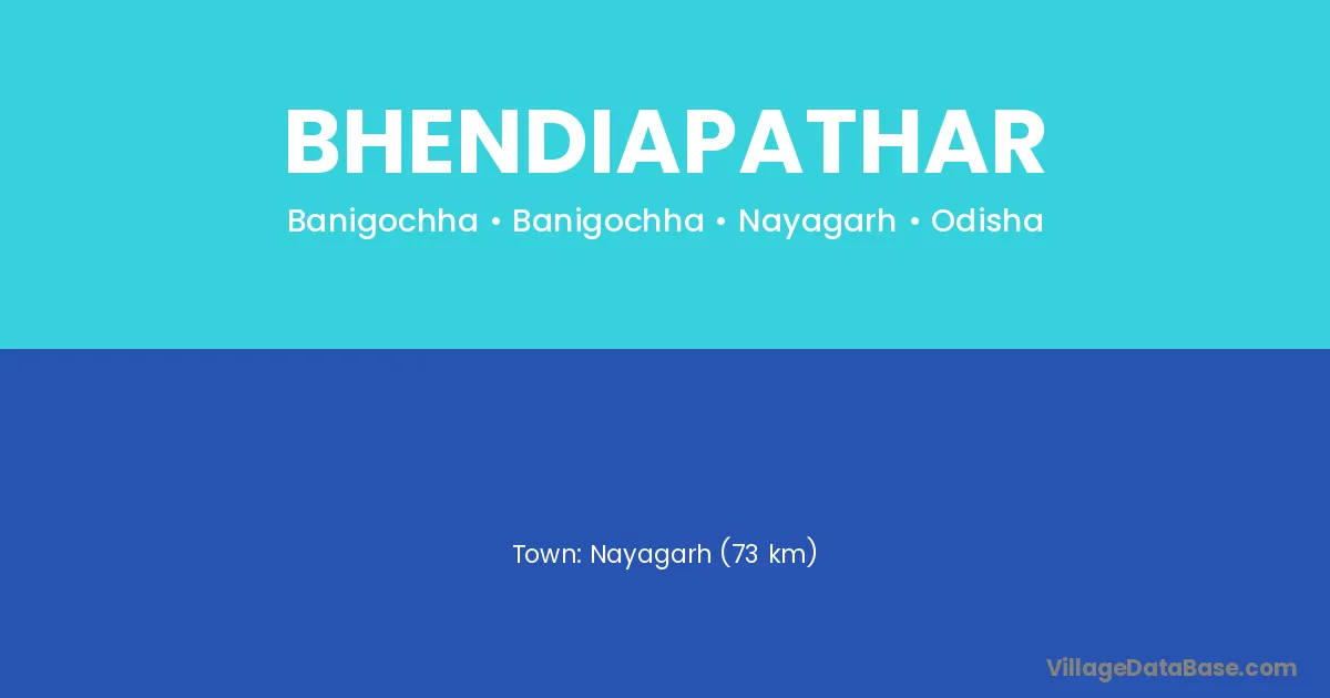 Nayagarh (73 km) is the nearest town to Bhendiapathar village for major economic activities and is located approximately 73 km away.