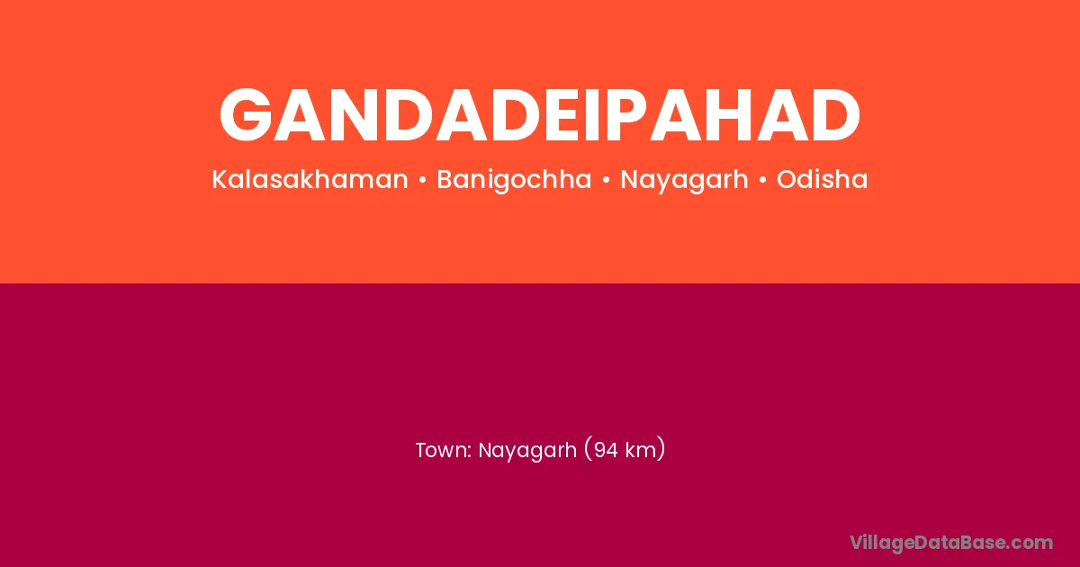 Nayagarh (94 km) is the nearest town to Gandadeipahad village for major economic activities and is located approximately 94 km away.