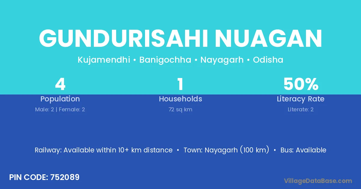 Gundurisahi Nuagan village has a total population of 4 people, of which 2 are males and 2 are females.