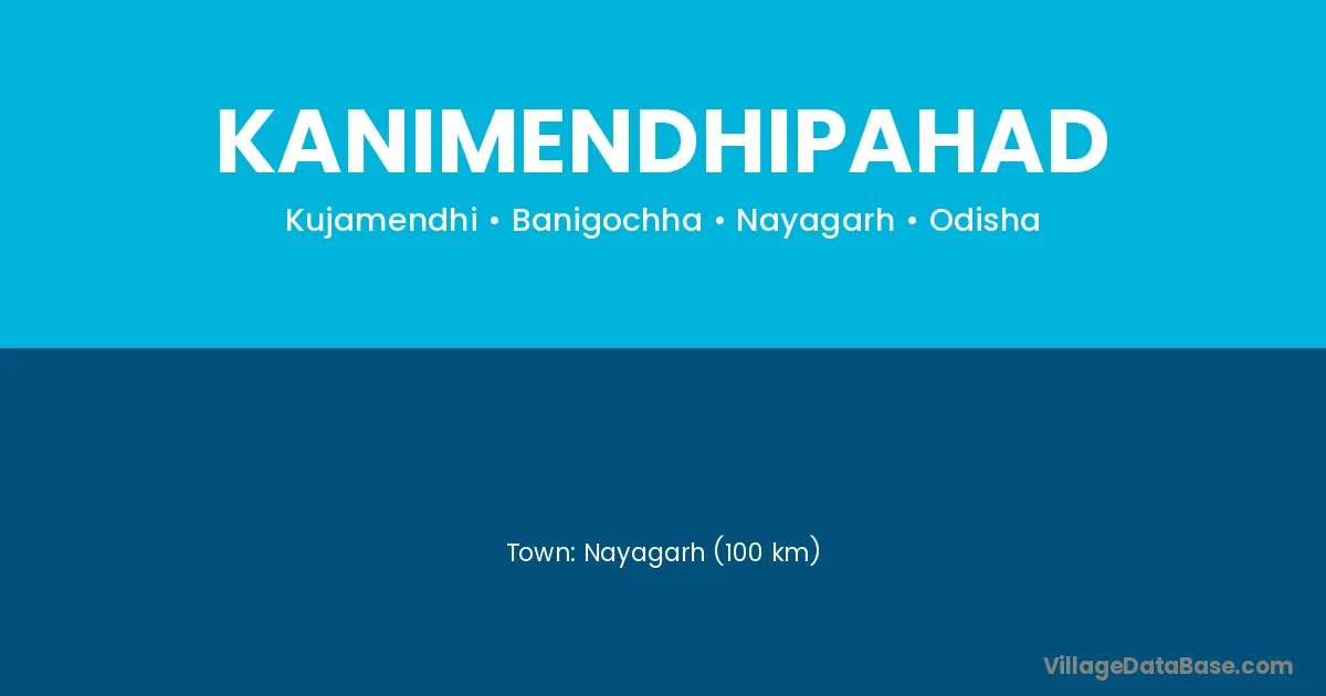 Nayagarh (100 km) is the nearest town to Kanimendhipahad village for major economic activities and is located approximately 100 km away.
