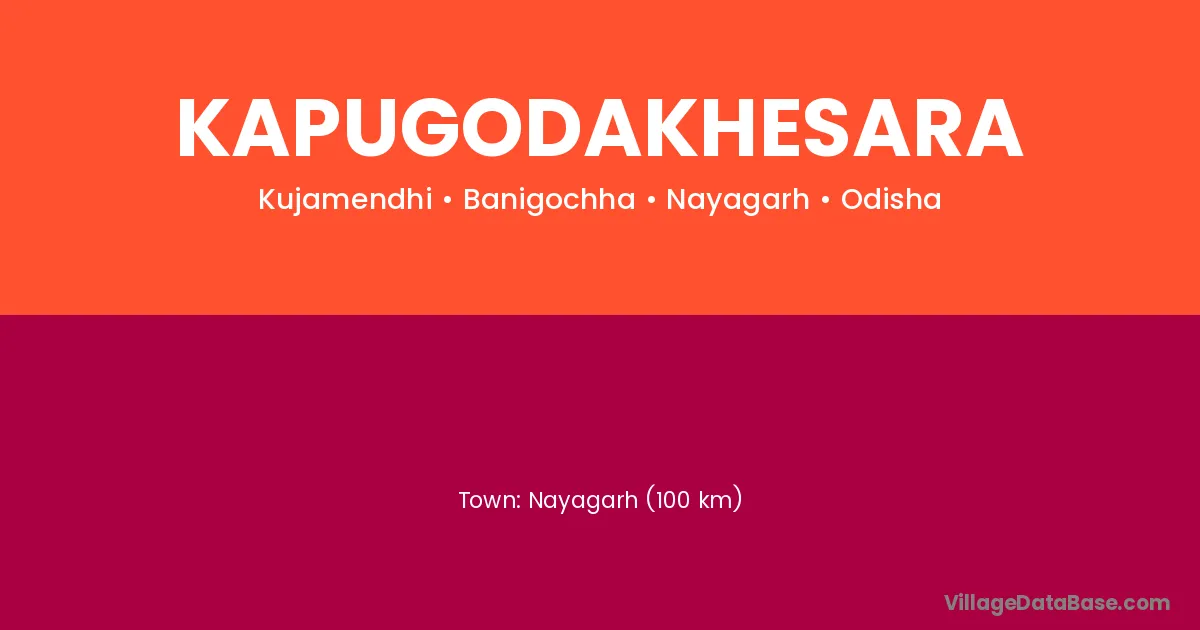 Nayagarh (100 km) is the nearest town to Kapugodakhesara village for major economic activities and is located approximately 100 km away.