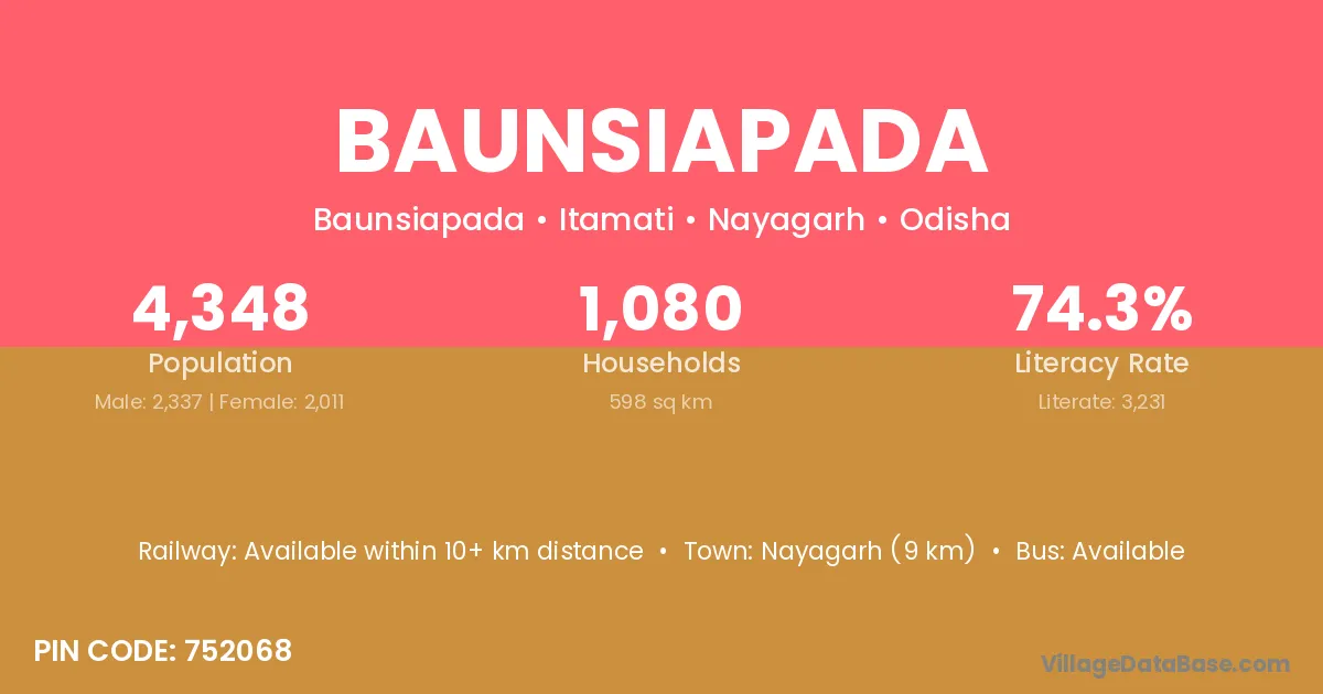 The population of Baunsiapada village is distributed between literate and illiterate residents as follows: