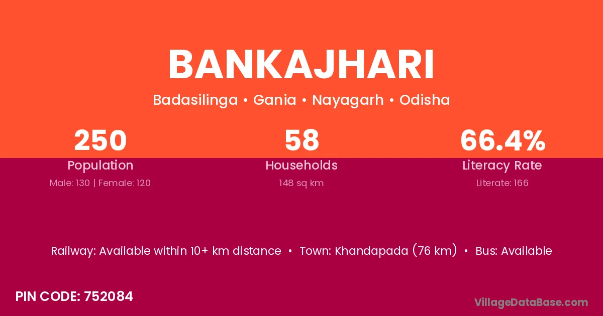 Bankajhari village has a total population of 250 people, of which 130 are males and 120 are females.