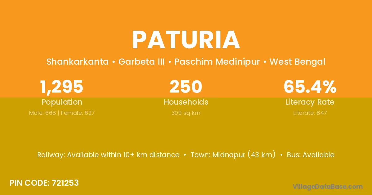 Khandapada (24 km) is the nearest town to Paturia village for major economic activities and is located approximately 24 km away.