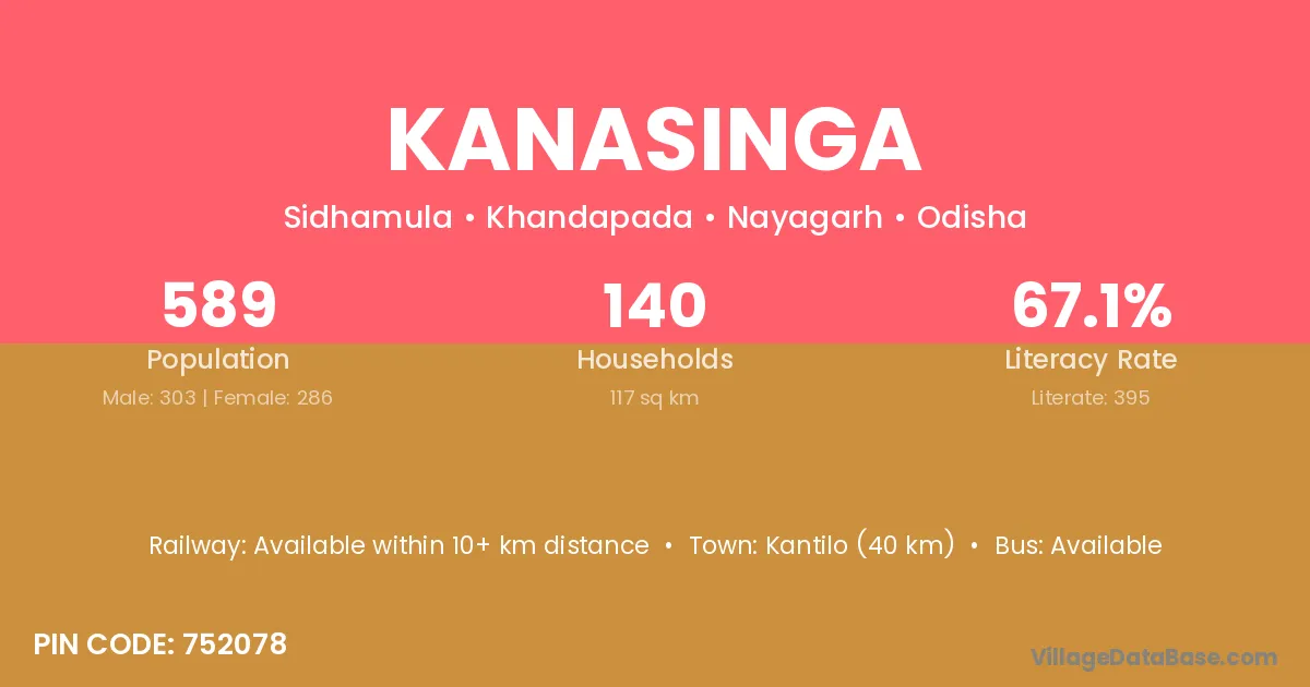 Kantilo (40 km) is the nearest town to Kanasinga village for major economic activities and is located approximately 40 km away.