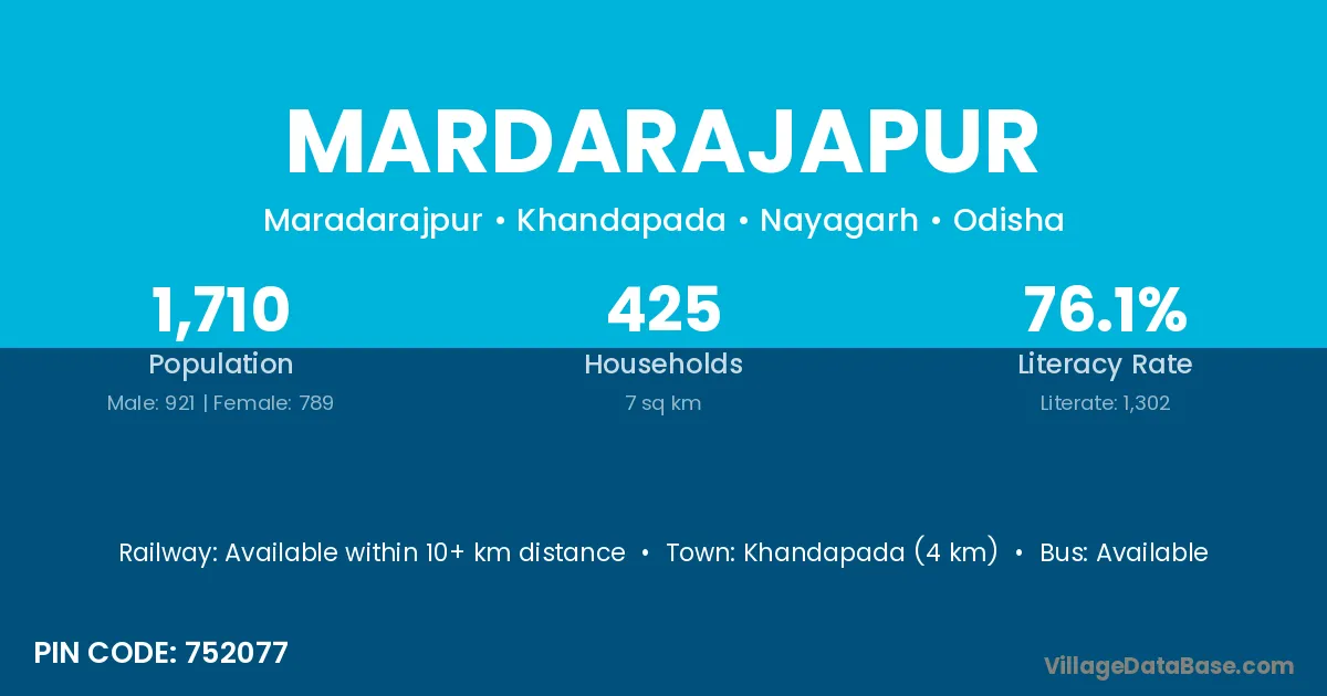 Khandapada (4 km) is the nearest town to Mardarajapur village for major economic activities and is located approximately 4 km away.