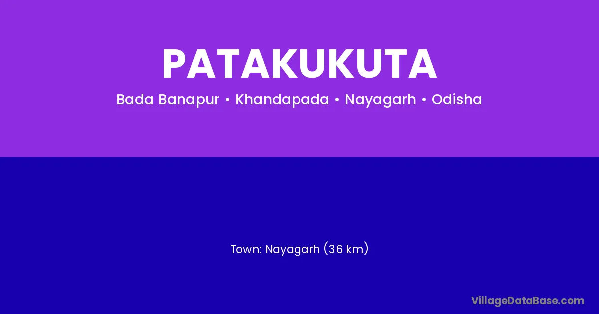 Nayagarh (36 km) is the nearest town to Patakukuta village for major economic activities and is located approximately 36 km away.
