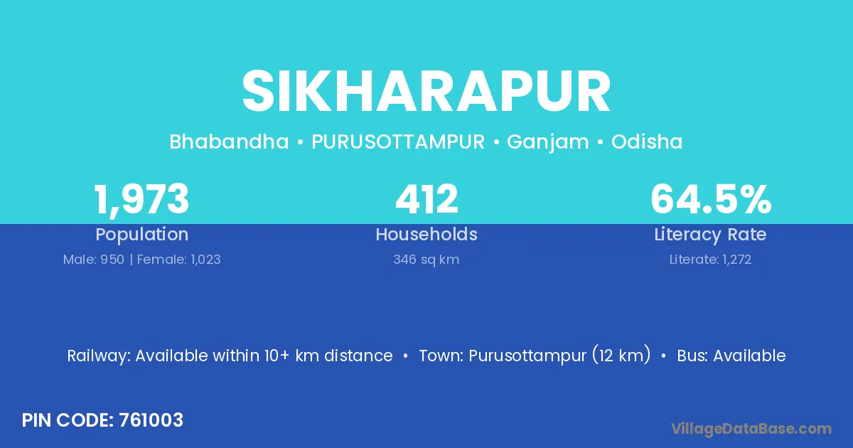 Nayagarh (13 km) is the nearest town to Sikharapur village for major economic activities and is located approximately 13 km away.
