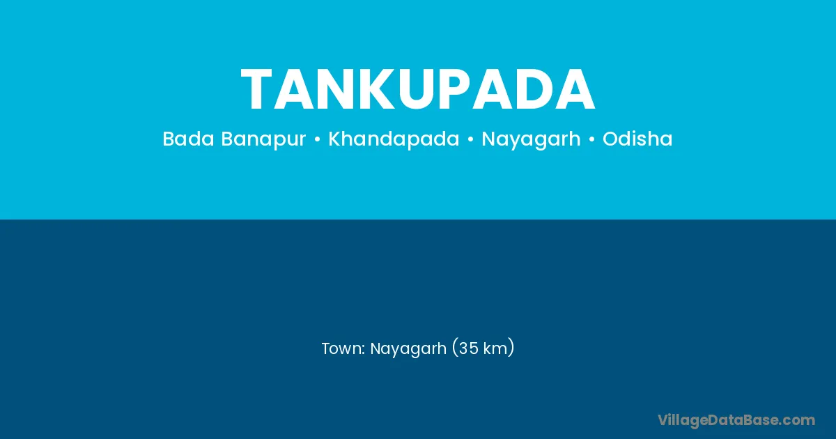 Nayagarh (35 km) is the nearest town to Tankupada village for major economic activities and is located approximately 35 km away.