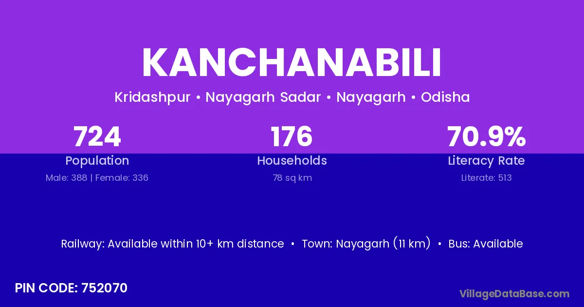 Nayagarh (11 km) is the nearest town to Kanchanabili village for major economic activities and is located approximately 11 km away.