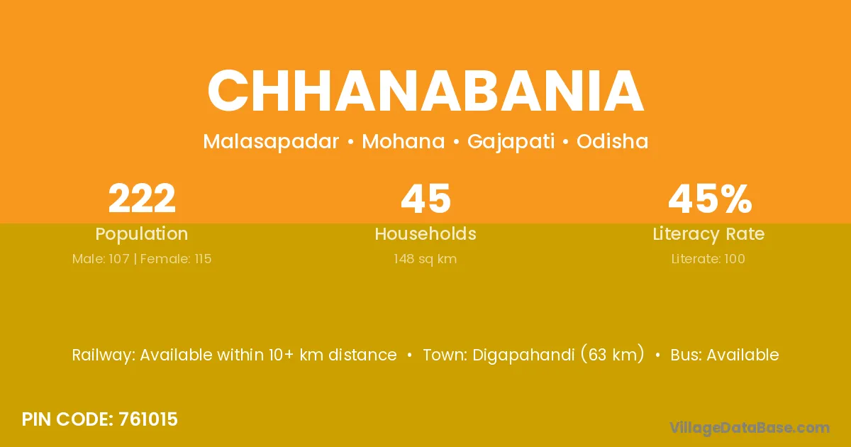 Nayagarh (28 km) is the nearest town to Chhanabania village for major economic activities and is located approximately 28 km away.