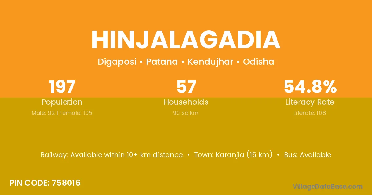 Nayagarh (22 km) is the nearest town to Hinjalagadia village for major economic activities and is located approximately 22 km away.