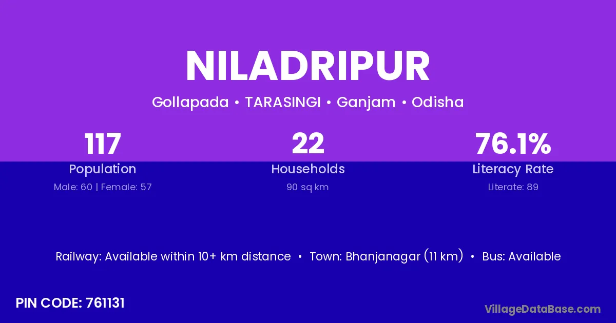 Nayagarh (48 km) is the nearest town to Niladripur village for major economic activities and is located approximately 48 km away.
