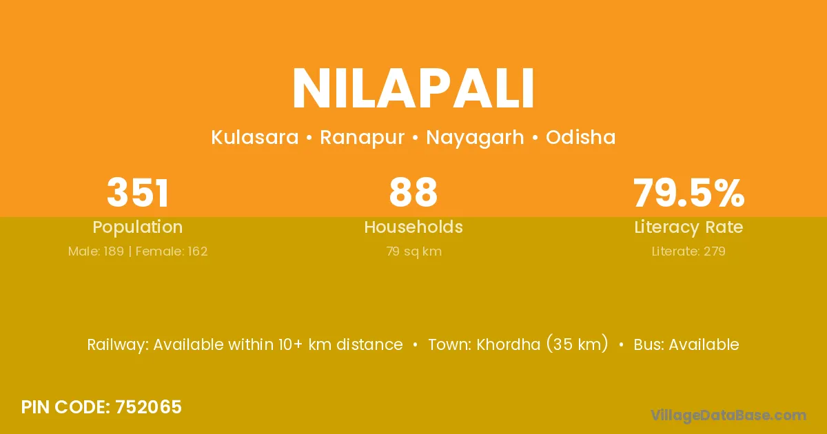 Nilapali village has a total population of 351 people, of which 189 are males and 162 are females.