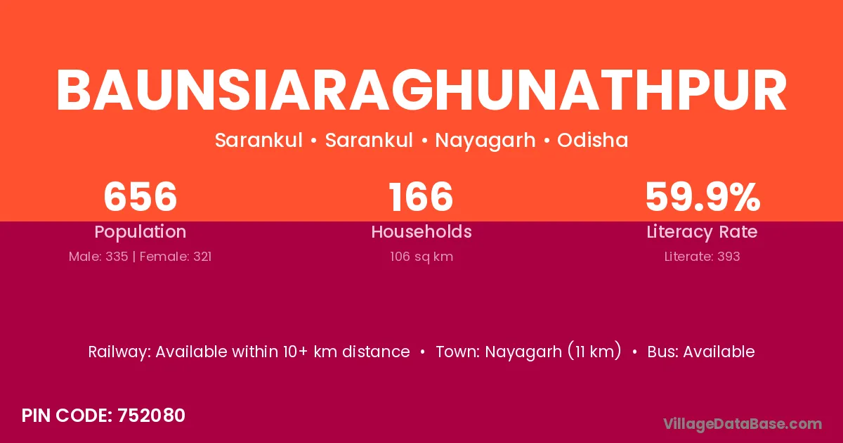 Baunsiaraghunathpur village is located in the Sarankul Tehsil of the Nayagarh district in Odisha .