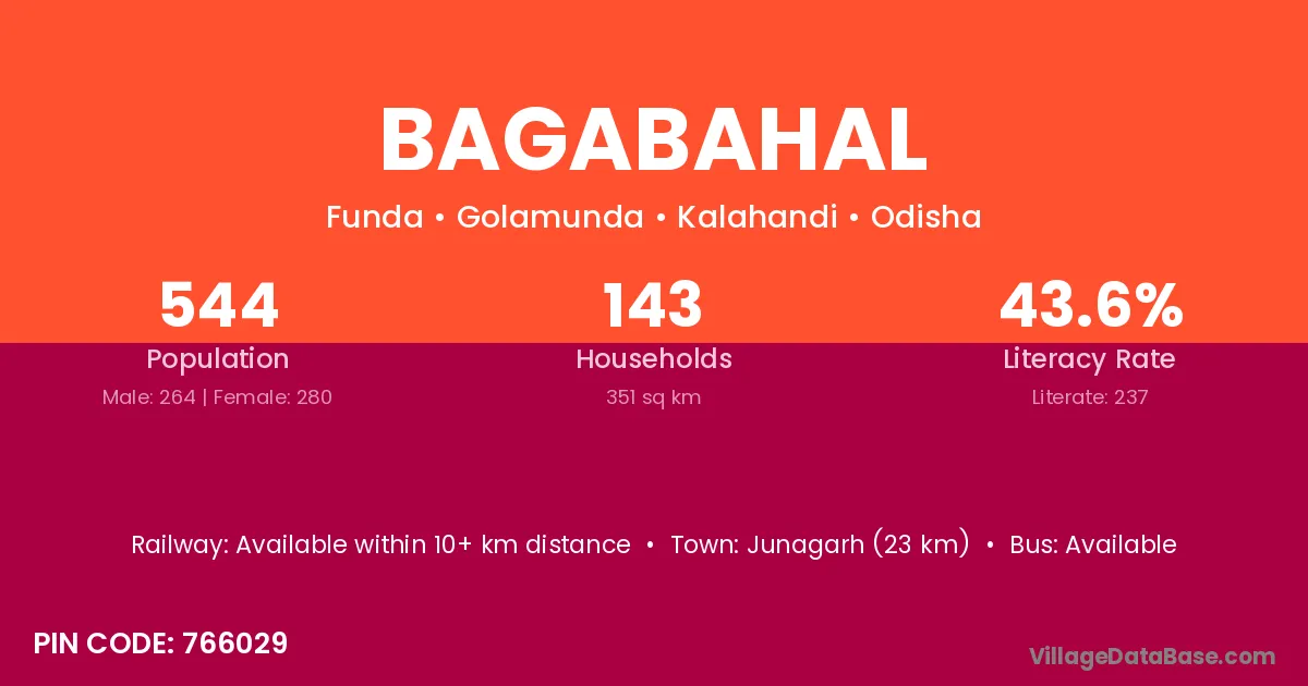 Khariar Road (20 km) is the nearest town to Bagabahal village for major economic activities and is located approximately 20 km away.