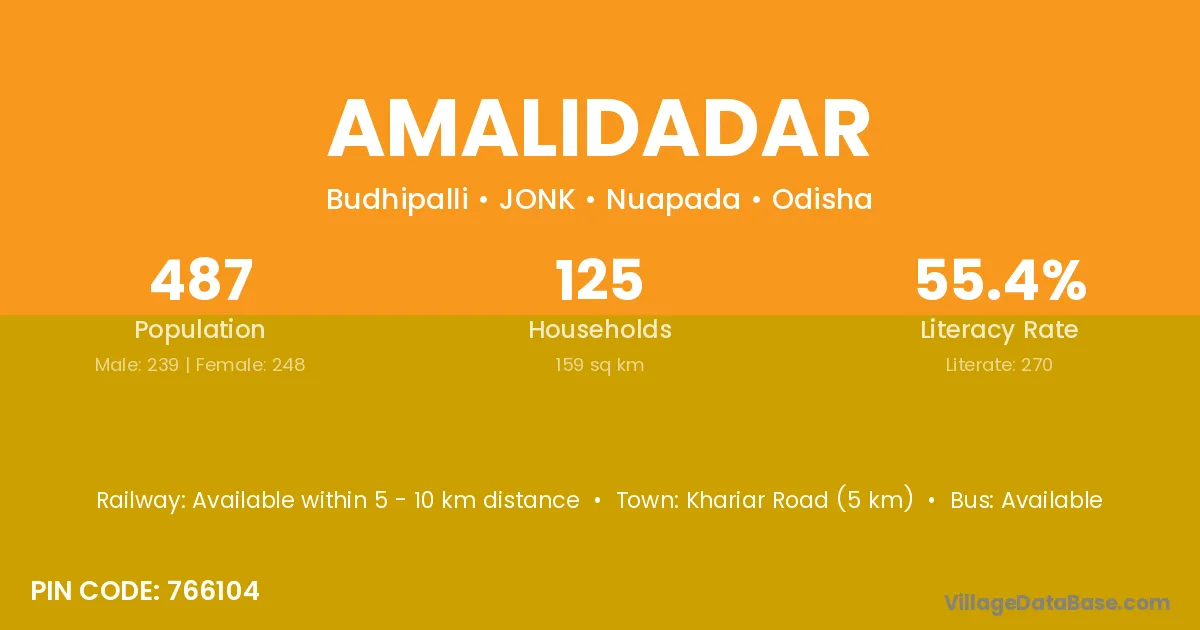 Khariar Road (5 km) is the nearest town to Amalidadar village for major economic activities and is located approximately 5 km away.