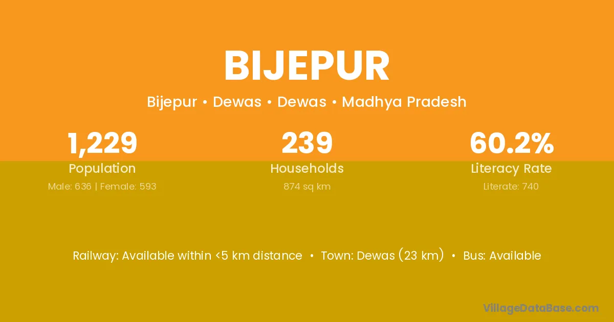 Khariar Road (2 km) is the nearest town to Bijepur village for major economic activities and is located approximately 2 km away.