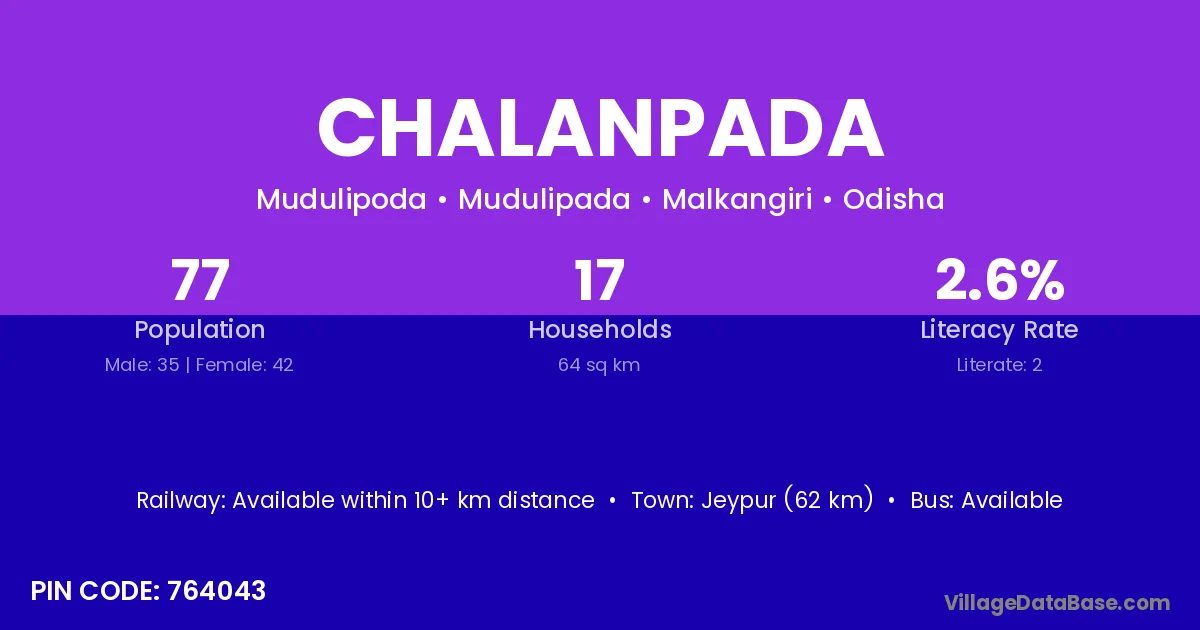 Khariar Road (5 km) is the nearest town to Chalanpada village for major economic activities and is located approximately 5 km away.
