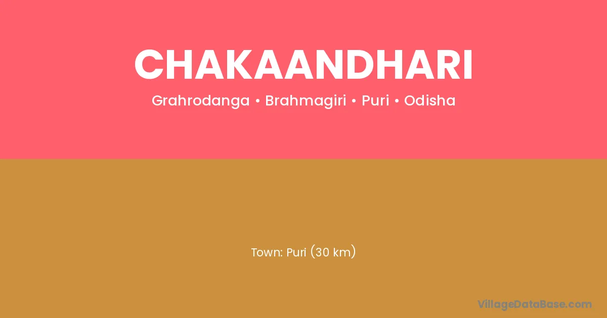 Puri (30 km) is the nearest town to Chakaandhari village for major economic activities and is located approximately 30 km away.