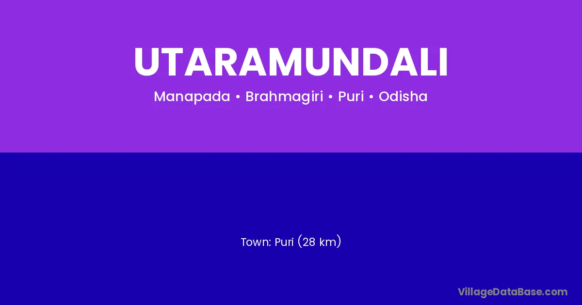 Puri (28 km) is the nearest town to Utaramundali village for major economic activities and is located approximately 28 km away.