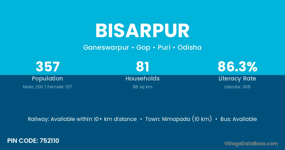 Bisarpur village is located in the Gop Tehsil of the Puri district in Odisha .