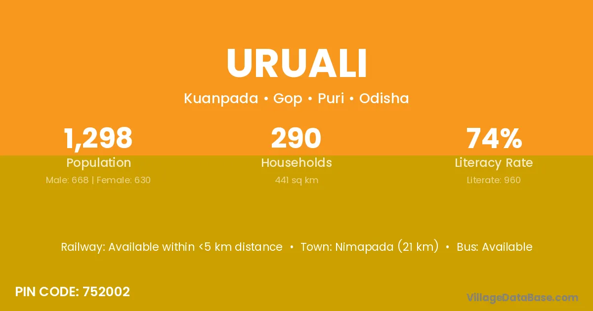 Nimapada (21 km) is the nearest town to Uruali village for major economic activities and is located approximately 21 km away.