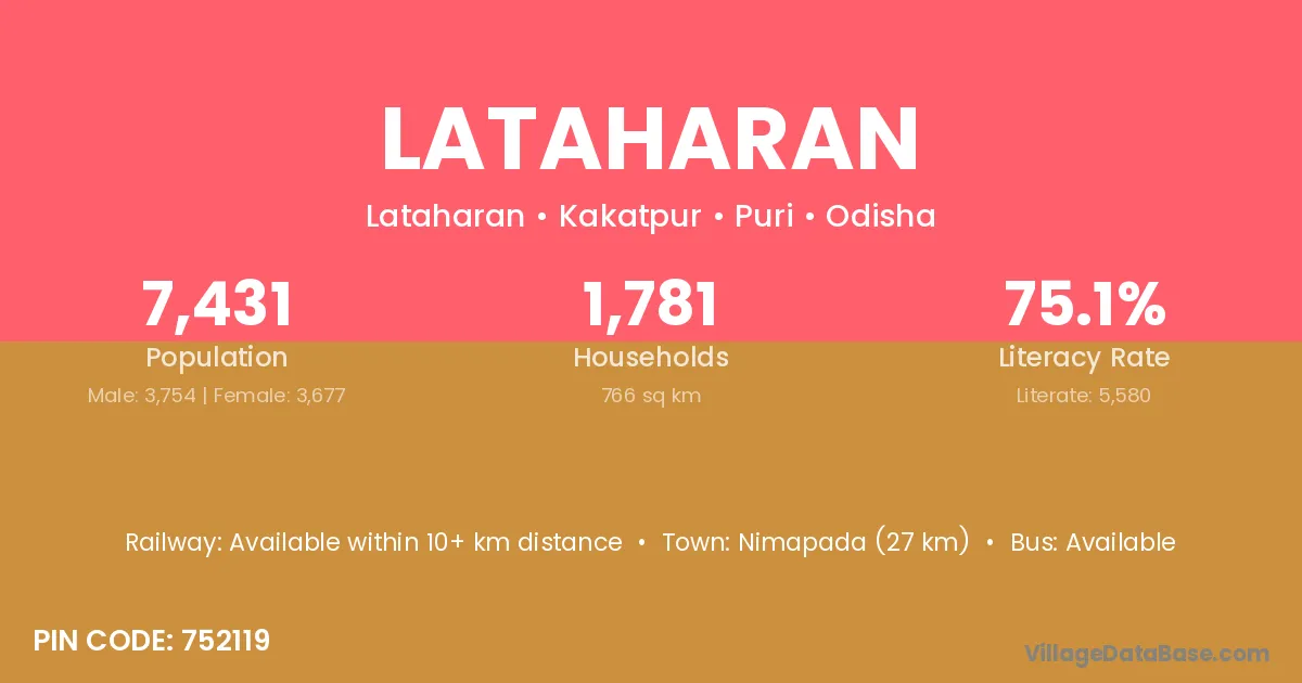Nimapada (27 km) is the nearest town to Lataharan village for major economic activities and is located approximately 27 km away.