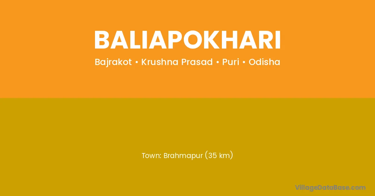 Brahmapur (35 km) is the nearest town to Baliapokhari village for major economic activities and is located approximately 35 km away.