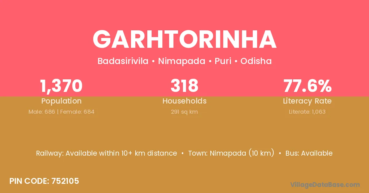 Garhtorinha village has a total population of 1,370 people, of which 686 are males and 684 are females.