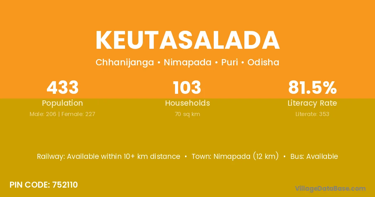 Nimapada (12 km) is the nearest town to Keutasalada village for major economic activities and is located approximately 12 km away.