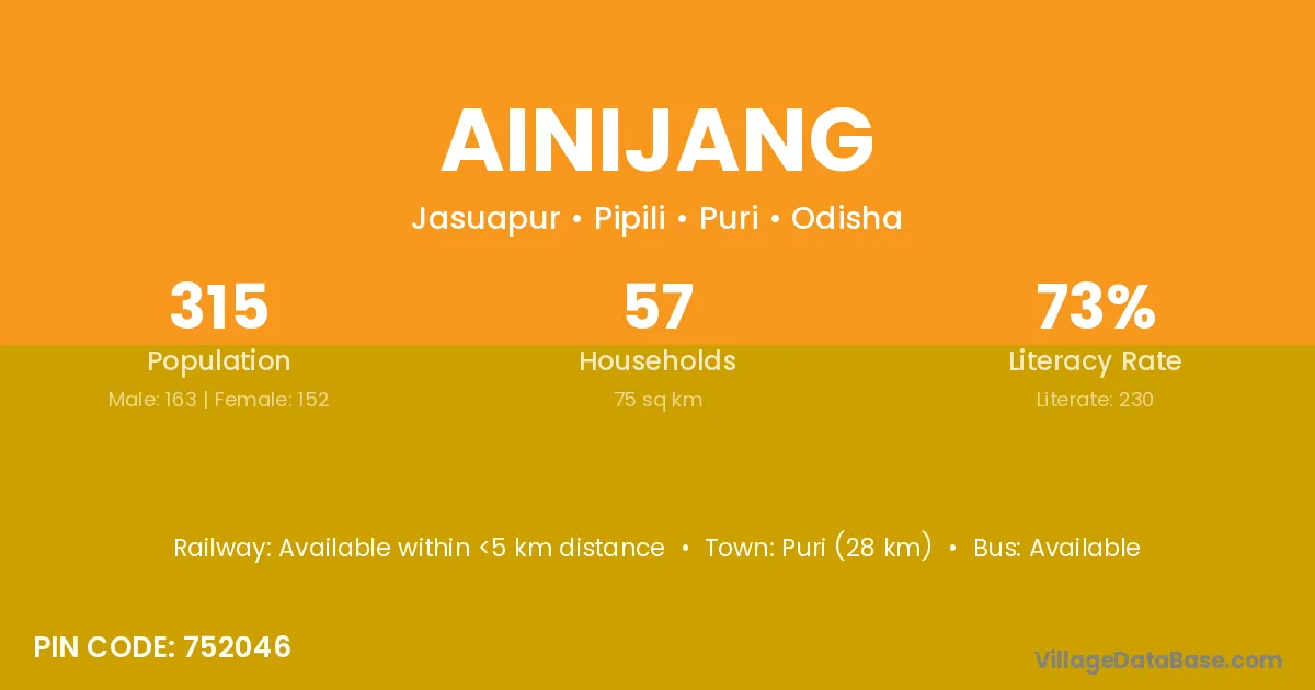 Ainijang village is located in the Pipili Tehsil of the Puri district in Odisha .