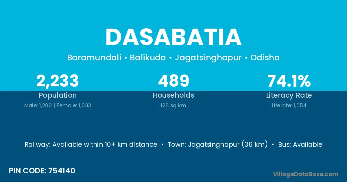Dasabatia village has a total population of 471 people, of which 239 are males and 232 are females.