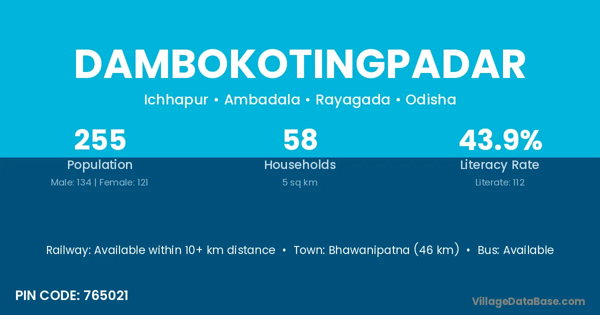 Dambokotingpadar village is located in the Ambadala Tehsil of the Rayagada district in Odisha .
