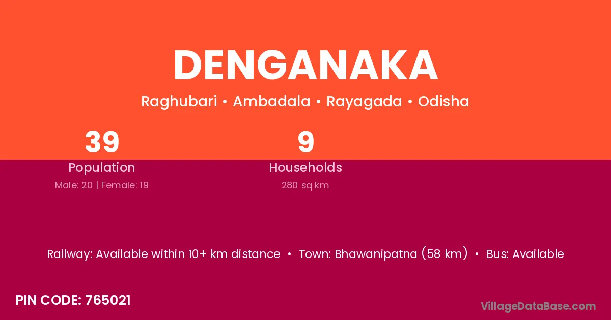 Bhawanipatna (58 km) is the nearest town to Denganaka village for major economic activities and is located approximately 58 km away.