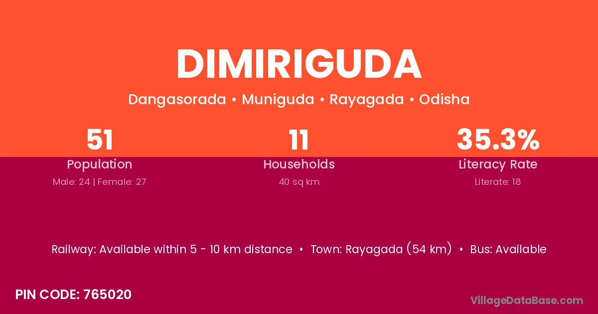 Dimiriguda village is located in the Ambadala Tehsil of the Rayagada district in Odisha .